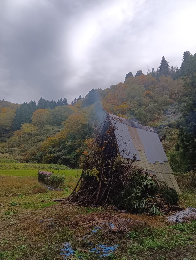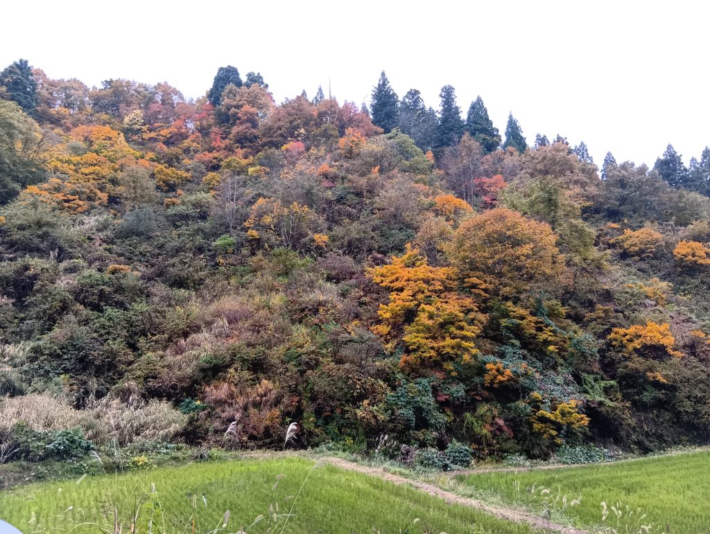 朝晩の冷え込みとともに冬型が来ると、日中も気温が上がらず、屋外イベントは厳しくなります。週末準備・日曜開催の「笹山縄文マルシェ」は素敵な人たちと物達が集まって下さいましたが、人出が少なく残念で「もったいなかった」です。奥山の紅葉も曇りのなか。日が当たらない紅葉も「いとあわれ」ですが、・・・やっぱり、さみしいですね。