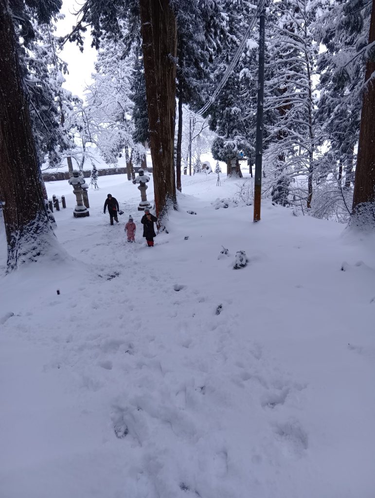 午前中は、高龍神社・鎮守の森と60階段と境内広場に行き、散歩の予定・つもりが、イットキ・2時間の家族団らん雪遊びになりました。ありがとうございます。