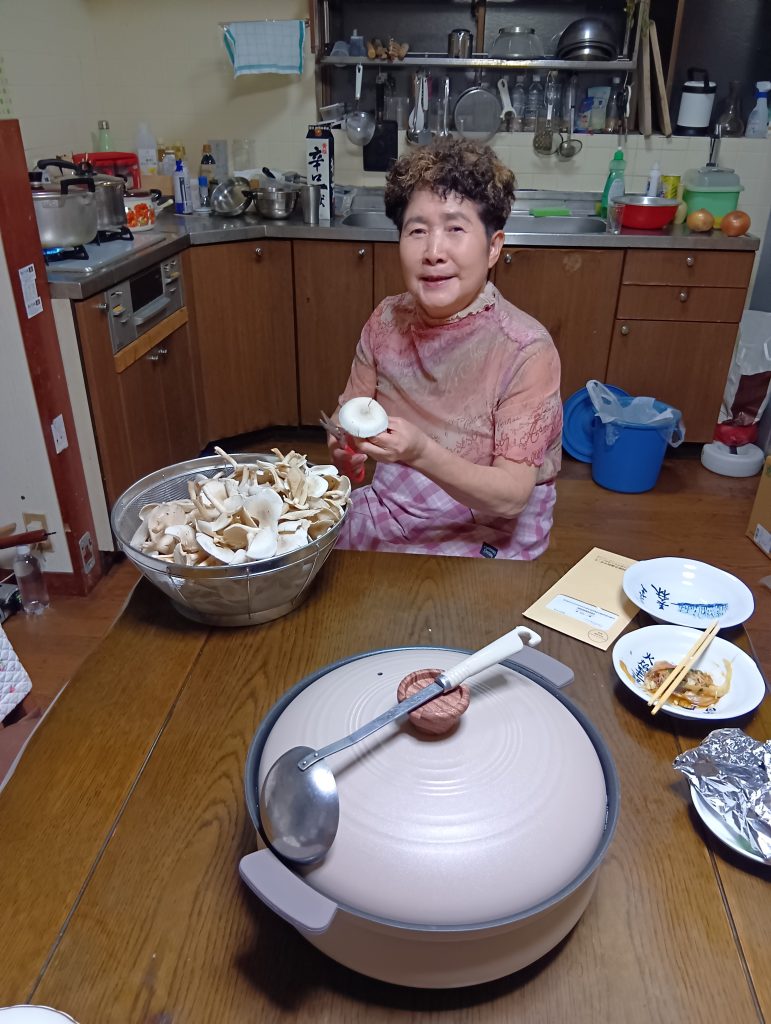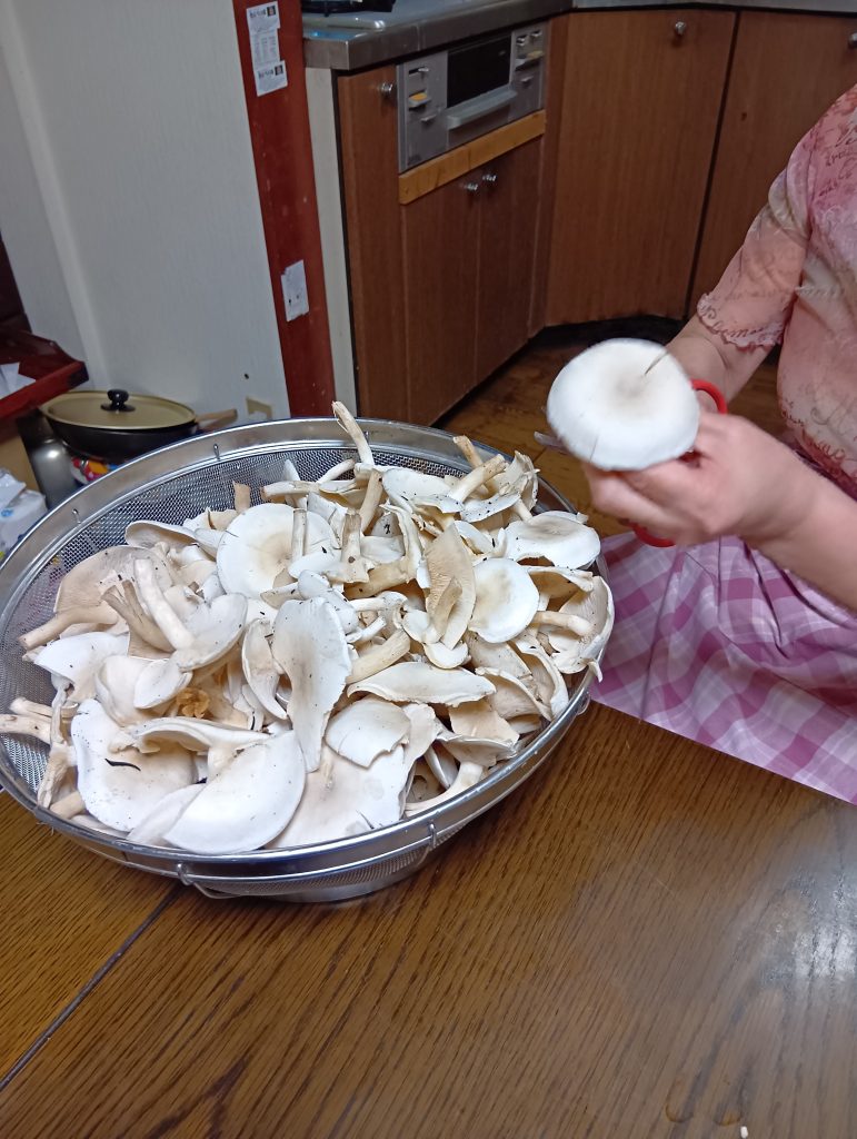 2人で反省会話しながら、『茸づくり』。⇒ 茹でて、水に晒して、5時間ほど水切りして、先程!塩漬け瓶詰め完了。半日の『キセキ』・・・軌跡・奇跡・・・証拠写真は一場面。現場に行くと写真忘れる!!